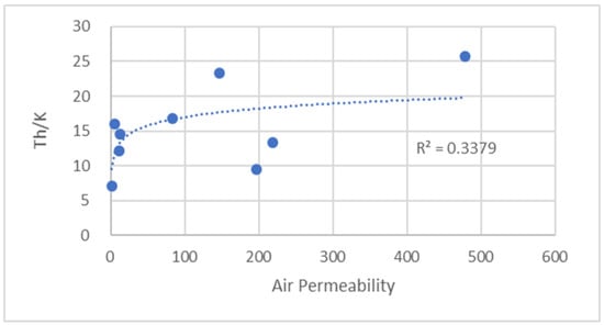 A scatter plot showing the relations of the Th/K ratio and air permeability.