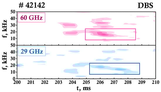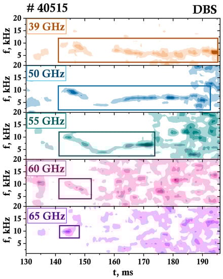- Bulanin, V.V.; Gusev, V.K.; Kurskiev, G.S.; Minaev, V.B.; Patrov, M.I.; Petrov, A.V.; Petrov, Y.V.; Yashin, A.Y. Application of the Multifrequency Doppler Backscattering Method for Studying Alfvén Modes at a Tokamak. Tech. Phys. Lett. 2019, 45, 1107–1110. [Google Scholar] [CrossRef]
