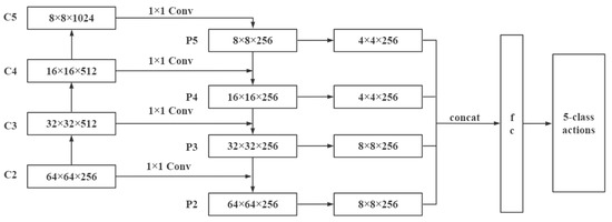 Scheme 5: It is the same as the pyramid construction scheme of Scheme 4, but uses P2-P5 multi-layer fusion features to identify actions, in order to form a contrast with Scheme 4 and explore the functions of different layers of features, and its structure is shown in