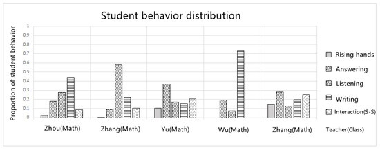 Design of Students’ Behavior Characteristics in Class. Large-class teaching is widely used in schools in China. A large number of students in class leads to serious occlusion among students and various forms of action. However, the low resolution of the camera also makes the imaging of individual behavior blurred, especially for the students in the back row. The existing S–T behavior classification method is difficult to effectively distinguish various intra-class behaviors and inter-class behaviors on images. For example, in S behavior, students’ thinking and silence behaviors are difficult to distinguish between calculation and finishing homework. In T behavior, teachers’ questioning, explanation, and evaluation are difficult to distinguish.