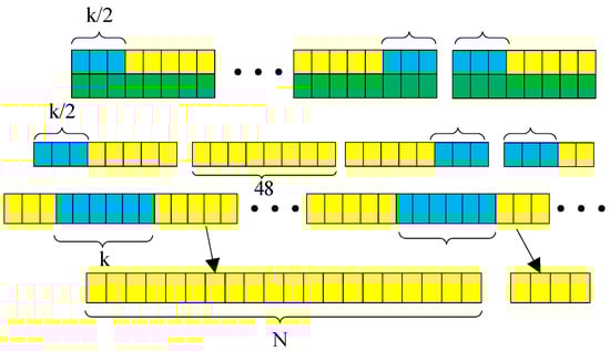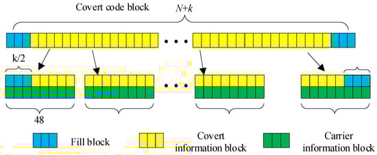 The symbol construction of the subcarrier signal is illustrated in Figure 5. The black code blocks are filled bits that can also be used to judge the beginning and end of the covert information code block. The yellow code blocks are covert information code blocks. Finite covert code blocks would be split into multiple blocks and combined with the carrier information block.