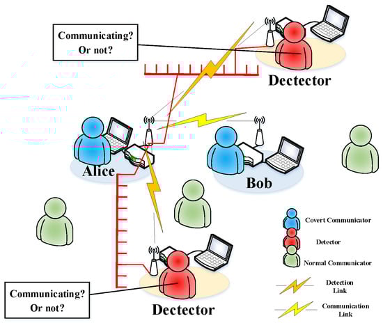 The proliferation of 5G and other wireless communication technologies has given rise to a broad range of multi-modal sensors, which have accelerated the process of social informatization [,]. However, the majority of IoT devices are susceptible to hacking and compromise. Given that eavesdroppers can intercept wireless communication signals, confidential information is at risk. This poses a significant threat to communication security. To ensure the privacy of user data, several approaches have been proposed to transmit noisy or incomplete data, which can impact the performance of some IoT applications []. As a result, it is crucial to transmitting information secretly without detection or interception, known as wireless covert communication.