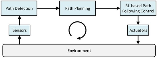 Figure 1 shows the action loop for the path following control task considered in this work. First, suitable sensors should detect the path boundaries, and the planned path should be closely followed. Afterwards, the path is forwarded to the reinforcement learning-based path-following controller, which is trained in simulation with the vehicle model of the target vehicle.
