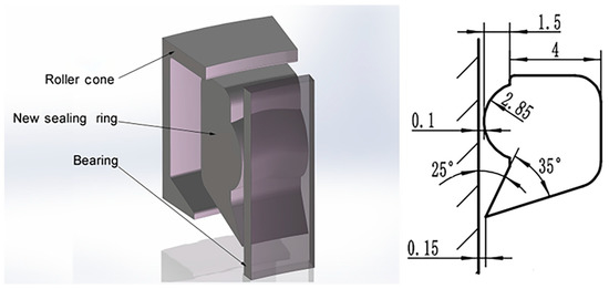 At present, the most common applications for roller cone bit bearing seals are radial seals and metal seals [1,2]. For the radial seal ring, the structural design, improvement, and failure research are mainly carried out through theory, simulation, and experimental research on the sealing performance, and the purpose is to improve the life and reliability of the seal [3,4]. O-ring is the most widely used. Based on O-ring, researchers have improved the structure [5,6], the sealing performance [7], and life to a certain extent [8,9]. The failure mechanism, sealing performance, and wear capacity of the sealing ring were studied by means of theoretical calculation and other methods [10,11], and the corresponding improvement methods were proposed [12,13]. Different sealing rings have different sealing characteristics, but the problem of high temperature failure cannot be solved [14]. Therefore, bimetallic seals are designed, and its heat resistance is better than rubber seal. The researchers improve its sealing performance through structural optimization and material improvement [15,16]. However, because it takes up a large space, it will have a certain impact on the strength of the bearing. In response to this problem, the researchers designed a single metal seal [17,18]. The single metal seal has a simple structure, small volume, and few components [19,20]. Therefore, many scholars use theory, simulation, and experimental research methods [21,22] to study the effects of factors on the metal sealing performance, such as high rotation speed, rubber compression, contact pressure, structural form, structural parameters, materials, grease, assembly form, etc. [23,24], then optimize and improve the structure to improve sealing performance, service life, and drilling efficiency [25].