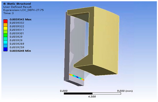 As shown in Figure 8, when the change value of the calculation result is less than the set allowable deviation value, the number of grid cells will no longer have a significant impact on the calculation result. When the number of grid cells reaches 6000, and the number of nodes reaches 27,000, the upper and lower deviation of the calculation results shall not exceed 5%, which meets the calculation requirements. At this time, the average size of grid cells is 0.375 mm.