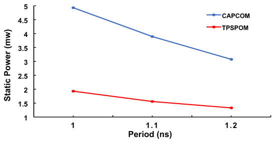 The results show that the TPSPOM method is more effective when using triple-threshold voltage. The results indicate that under the shortest 1 ns delay constraint, compared to the all-LVT circuit, CAPCOM’s static power consumption is reduced to 24.91%, while TPSPOM’s is reduced to 9.75%. The percentage of the SVT cells for CAPCOM is 11.30%, while for TPSPOM is 29.61%. Meanwhile, the percentage of the LVT cells for CAPCOM is 21.2%, while for TPSPOM is 4.95%.