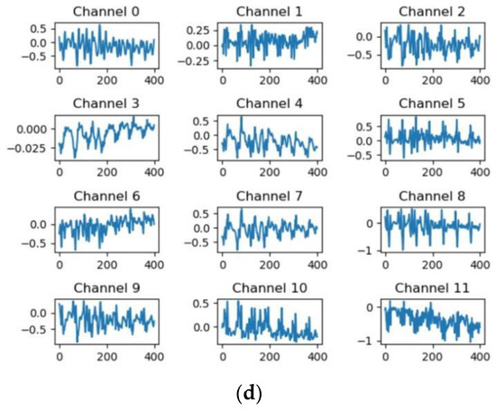 The MESA’s visual feature map of the first convolutional layer for the different residual modules whose kernel size is 5 samples, 11 samples, and 21 samples, respectively. (a) A random ECG sequence for MESA, (b) feature maps extracted by residual modules whose kernel size is 5, (c) feature maps extracted by residual modules whose kernel size is 11, and (d) feature maps extracted by residual modules whose kernel size is 21.