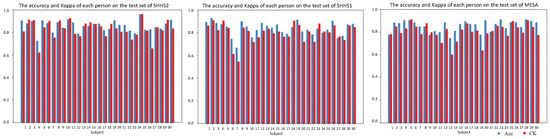 An example of the accuracy (ACC) and Kappa (CK) of each subject in the test sets.