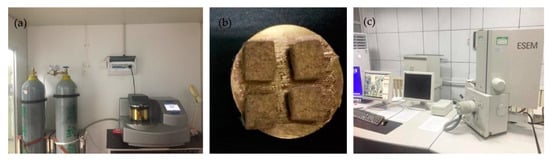 SEM test system: (a) vacuum treatment, (b) gold spray treatment and (c) scanning electron microscope XL-30.