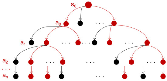 - is the state transition probability matrix, which specifies the probability of taking action for a state. This is consistent with Markov Property, where the state transfer effect of taking action is only related to the current state, irrespective of the historical state.