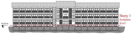 The adoption of FPS devices for the here-described refurbishment has been exploited by means of the introduction of a disjunction between the foundation level and superstructure in correspondence with the columns of story 1, as shown in Figure 8. In detail, the columns at the base of story 1 can be cut, and, thanks to the use of temporary supports, the FP devices can be installed. Moreover, the tops of the columns at the level of the substructure (i.e., below the isolator devices) have been connected by RC beams to enhance the robust response of the structure equipped with FPS against the potential malfunction of one or more of the devices [5]. More details about the isolation system design are given in the next sections.