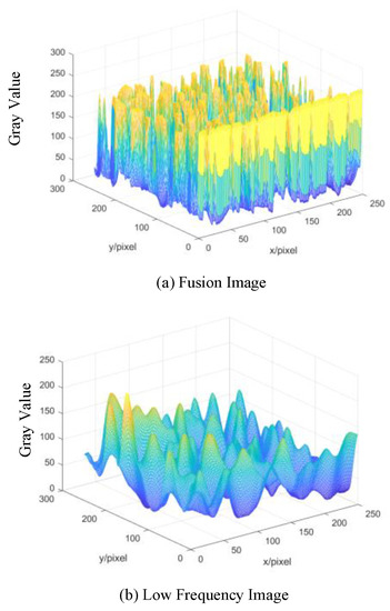 where , . The higher the AG value is, the more gradient information is contained in the low-frequency image. The formula for a low-frequency image fusion is as follows: