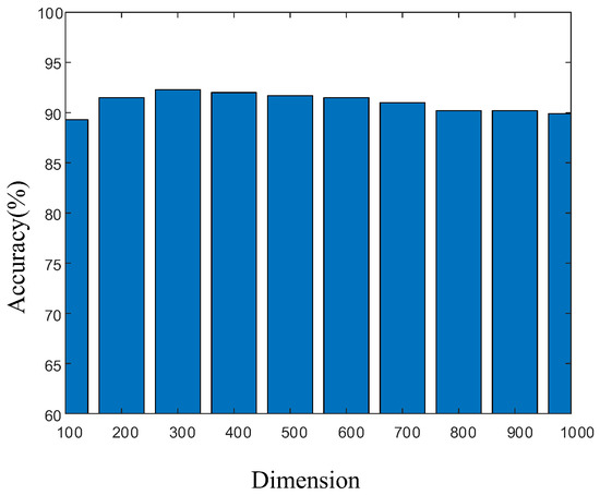 After extracting 1000 features using the CNN, standardization has been performed on the data [24]. Three hundred eigenvalues were selected as shown in Figure 12. In the SVM model, the two parameters with the RBF kernel have the greatest influence on the accuracy: penalty parameter () and gamma (). We referred to the data in [4] and finally chose .