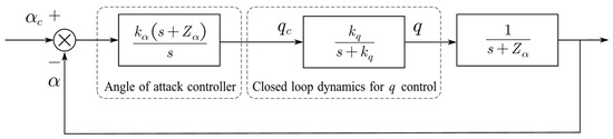 where βc is the command sideslip angle, which is set to zero throughout the short-landing process, and kβ is the control gain. The complete diagram for the attitude and angular rate control loop is illustrated in Figure 14.