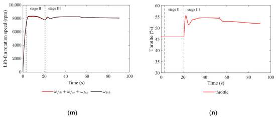 During short-landing operations, the lift fans play a crucial role in controlling the UAV’s sink rate and counteracting the negative pitch moment caused by the 3BSD nozzle’s pitching. To maintain the UAV’s attitude, a combination of lift fan control and elevator input is utilized.