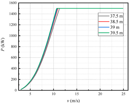 Steady power curves of turbines with blade extension and the original design are shown in Figure 6. The rated power of wind turbines is kept unchanged, but a significant increase in the steady power before rated wind speed is observed due to the blade extension. When the blade is extended by 1 m, 1.5 m and 2 m, the power is increased by about 5%, 8% and 10% under the optimal tip-speed ratio, respectively. Meanwhile, the rated wind speed of blade extension wind turbines is reduced from 11.3 m/s to 11 m/s, 10.8 m/s and 10.7 m/s for the extension length of 1 m, 1.5 m and 2 m, respectively.