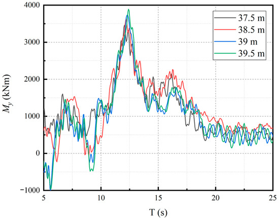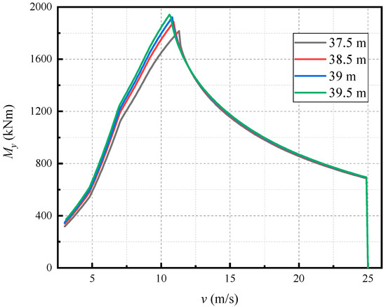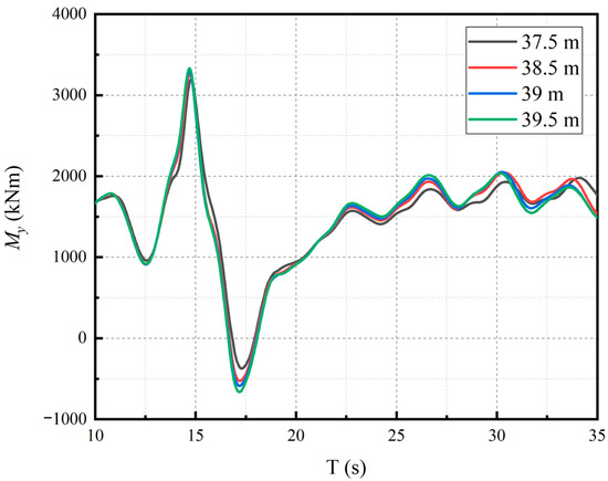 The ultimate loads of My at tower bottom and the corresponding load cases are shown in Table 12 while the load time series are shown in Figure 15. The loads are relatively stable at the beginning, but show a great fluctuation after the gust starts. The ultimate loads appear at about 17.5 s, and the longer the blade, the greater the amplitude of load fluctuation. Then, after the end of gust, the loads gradually converge.