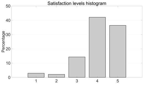 Satisfaction level with the AR application histogram (from 1—poorly satisfied to 5—very satisfied).