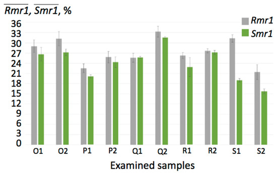 A representation of the material proportion of the profile Rmr1 and surface Smr1 is presented in the diagram in Figure 9.