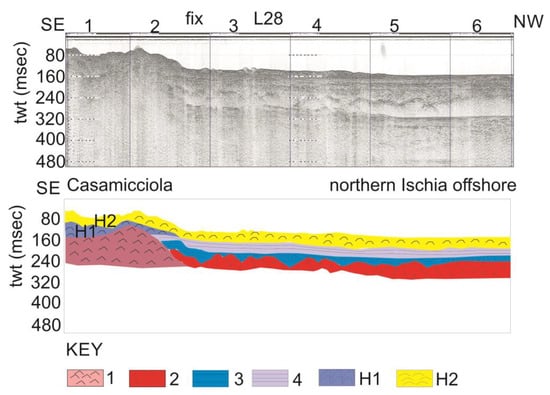 Seismic profile L28 (northern Ischia) and corresponding geologic interpretation.