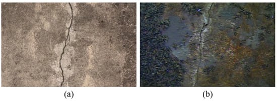Crack image: (a) crack image taken in the air; (b) crack image taken underwater.