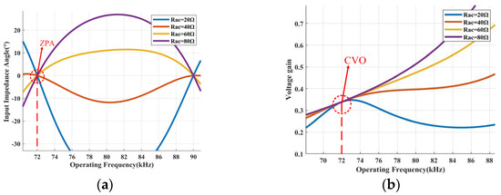 Voltage gain and input impedance angle of the proposed LC/S compensated IPT system. (a) Input Impedance Angle; (b) Voltage gain.