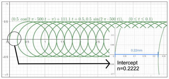 Based on [24], the circular wobbling was optimized when the overlap (as described by Equation (2)) was 0.75. This overlap led to the feed rate of 111.1 mm/s for the laser beam in the x (horizontal) direction.