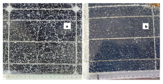Pieces of: (a) m-Si and (b) p-Si panels after removing the aluminum frames.