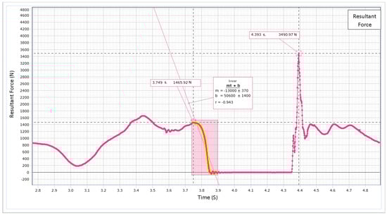 This study used PASCO scientific apparatus, manufactured by Roseville, California, USA. PASCO scientific equipment is a voltage-sensing force plate; this device could work in the laboratory and remotely (with Bluetooth and tablet connection) [38]. The biaxial force plate was adjusted to perform vertical and front-to-back force analyses. In evaluations of the load capacity of a force plate in human movement, the apparatus should be able to withstand the landing of the heaviest person from significant heights after they jump [39]. The sampling frequency of the equipment was set to 1000 Hz (or 1 kHz) so that 1000 force measurements were generated per second. The force plate was used to measure participants’ countermovement jump (CMJ) to understand the pre- and post-test differences in all test indicators, including the rate of force development (RFD), the time of RFD, ground reaction forces (GRFs) at the moment of jumping (unit: Newtons, N), the duration of passage (unit: seconds, s), and jump height.