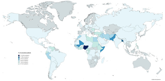World map representing the geographical origin of the screened subjects. Of note, 10.3% of the screened migrants were Nigerians, 7.6% Bangladeshi and 5.6% Pakistani.