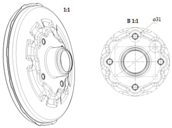 The monitored product was a component for the brake system of a car (Figure 1), produced by transfer pressing technology in a production organization focused on the production of components for the automotive industry. The material of the component is steel 5355 MC (EN10149). The production organization aims to produce a product of light construction for maximum weight savings. This saves raw materials, costs, and energy when using the products. The brake component is produced on the ARISA pressing line. We will focus on transfer production within the transfer pressing technology. Transfer production is a type of pressing process. In transfer pressing, a blank is cut at the beginning of the process, which is then moved to the next steps of the tool via the transfer system, where it is subsequently shaped. In transfer pressing, a semi-finished product is cut at the beginning of the process and then moved to the next steps of the tool via the transfer system, where it is subsequently shaped. The component is gradually created with seven strikes of the ram.
