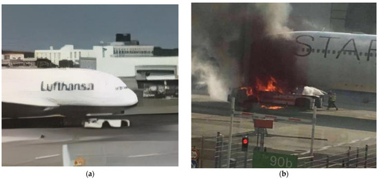 - The Most Expensive Spontaneous Combustion in History? The Aircraft Tractor Caught Fire and Burned the Nose of the Airliner. Available online: https://www.sohu.com/a/235270086_240515 (accessed on 11 January 2022).