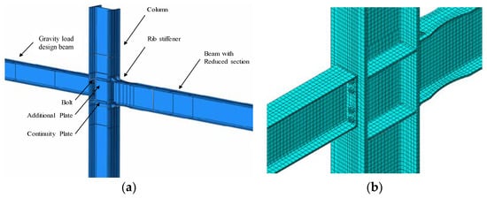 Figure 2a shows the details of the designed beam-to-column joints that were sub-structured from the reference building. The external joint of the MRF consists of a welded RBS connection on one side of the column (i.e., the connection of the MRF) and a flush end-plate bolted connection on the other side (i.e., the connection of the gravity load-resisting bay). The internal joint comprises two welded RBS connections per column side.