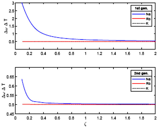The experimental data were taken from [22,23,24,25]. In detail, the experiment data for potassium were taken from [25] and those sodium from [23]. Furthermore, the experimental data for rubidium were found in [24], whereas the updated data were taken from [22].