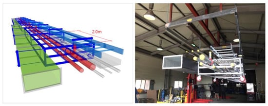 In Table 1, the length represents the length of the corridor to which the PMR is applied, and the length of the module was 6 m considering the ease of pipe assembly, processing, and movement. Accordingly, the number of modules was calculated. The area represents the horizontal area of the corridor to which the PMR was applied, and the volume represents the plenum space corresponding to the area to which the PMR was applied.