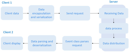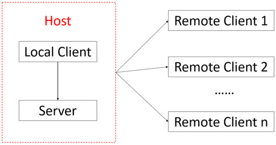 The relationship between the server, local client, and client is shown in Figure 5. Note that the client also acts as the host, which means that the client himself is the “local client”. The local client is also connected to the host server, with both running on the same computer. The other two remote clients, each located at different terminals, can connect to the host server at the same time in order to achieve multi-platform voice communication to the terminals.