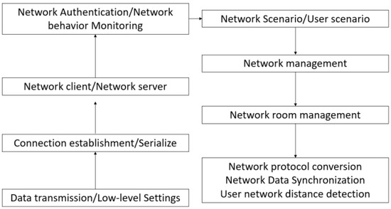 The Mirror Networking framework consists of a series of layers that add functionality. This networking framework has message handlers, generic high-performance serialization, distributed object management, state synchronization, and network classes: server, client, connection, etc. The network architecture diagram is shown in Figure 4.