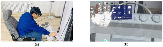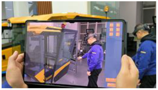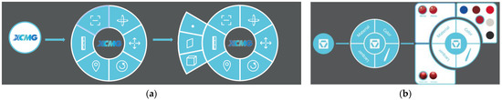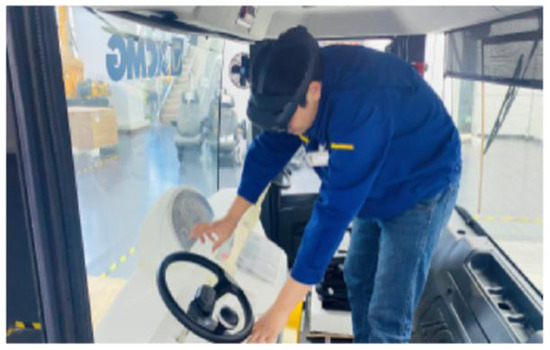 In industry, MR technology has also been used for robot control, as in Christyan Cruz’s integration [8] of a 6DoF robotic arm into Unitree’s quadruped robot ARTU-R, a work whose main contribution focused on high-level control of robot groups by MR. Elsewhere, Dimitris [9] focused on building a digital twin of the robotic arm to achieve real-time remote and safe operation. Based on this digital twin technology, Meysam [10] simulates CNC machining in Microsoft HoloLens to observe the machining process before the actual process begins. Incorporating MR technology into the design phase allows more relevant people to participate. Guo [2] has built a cockpit control device design and evaluation system based on mixed reality technology, which ensures a more efficient and realistic design environment for aircraft designers. It also provides a user evaluation environment that enables pilots to be involved in the design of the cockpit at an early stage. In the field of construction machinery research, MR technology is generally used for information prompting in the simulation of construction machinery—to help the driver to obtain information more intuitively [11], to reduce their mental burden [12], or as a virtual training system [13]. However, there is little research into design in either the research or manufacturing stage of construction machinery.
