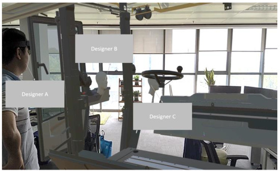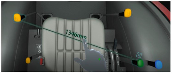 In the proposed appearance and shape evaluation scheme, some special tools are added, such as measurement and cutting. The measurement tool can measure the distance between any two points, lines, and surfaces, which is very practical for designers. The basic principle of the measurement tool is similar to the non-contact measurement method with interactive function proposed by Huang [44]. Both are based on Microsoft’s mixed reality product HoloLens2. The depth camera on HoloLens is used to scan the measurement space. Measurement points are determined by using gaze and gesture functions that enable users to realize non-contact measurement and automatic calculation of distance between target points. The cutting tool allows the designer and the user to see the situation of the machine cross-section, thereby facilitating a better understanding of details.