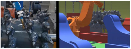 The comparison between the actual production process of milling rotor welding and virtual mapping.