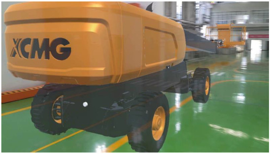 This section introduces the construction verification case for the virtual control of the high-altitude working platform. The high-altitude working platform is shown in Figure 26. The basic principle is to construct the virtual motion simulation mapping of the working platform and to experience its operation by wearing the MR headset, thereby realizing the real-time confirmation and training of complex on-site construction methods.