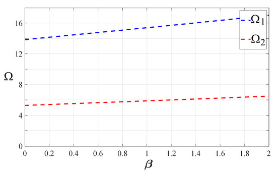 As can be seen from the Equation (8), the natural frequencies of the coupled system are affected by the stiffness ratio . The inappropriate stiffness ratio will make the natural frequencies imaginary numbers, which further leads to the instability of the coupled system.