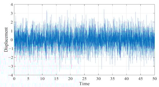 To simulate engineering reality, a random force excitation with zero mean value and unit variance is constructed in the , and its time history is shown in Figure 14. The mass and stiffness of the primary system is selected as , and the mass of DVA is . Then, the corresponding time history of different DVAs attached to primary system are shown in Figure 15. Table 4 summarizes the variances and decrease ratios of the the displacements of the primary system.