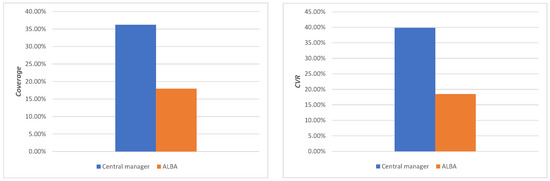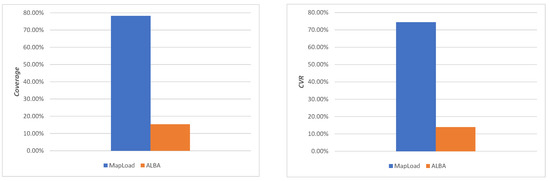 To compare the efficiency of ALBA’s and MapLoad’s CRA mitigation mechanisms, we used the security measures of Coverage and CVR. These measures were calculated using Equations (5) and (6) respectively.
