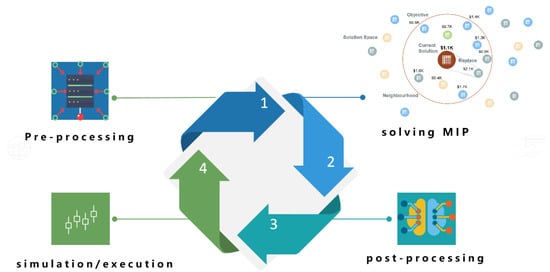 In this step, we solve the formulated MIP problem for the coming scheduling window via mathematical optimisation solver (e.g., Gurobi, Xpress, Cplex, etc.). The choice of a proper scheduling window size depends on the specific requirements and constraints of the problem, as well as the available computational resources. To better utilize the solver, we also integrate more strategies as follows.