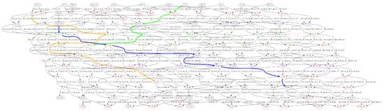 - For each node , we add corresponding nodes in N. For each train , we add corresponding virtual source node in , where represents the source node where train t departs. We also add one sink into N, where represents the sink node where every train terminates its journey.