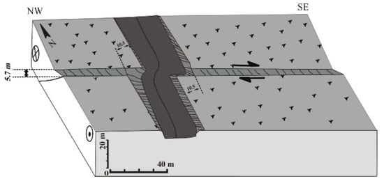 The parameters related to the activity of the fault on the surface and subsurface calculated applying empirical relationships (Equations (1)–(6)) for strike–slip faults are listed in Table 4.
