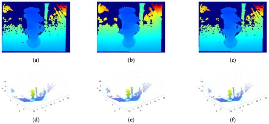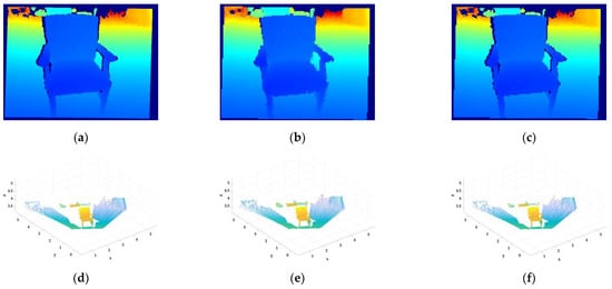 This study evaluates the effectiveness of the five classical interpolation algorithms mentioned at the start of the preceding paragraph with respect to the super-resolution of depth images. Using experimental data obtained from the depth image dataset in [35], the depth images and point clouds are first 50% down-sampled and then 200% up-sampled to examine the effectiveness of the interpolation algorithms. The super-resolution results are shown in Figure 1, Figure 2, Figure 3, Figure 4, Figure 5 and Figure 6 and Table 1, the images show good clarity and completeness after scaling.