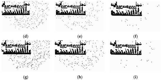 Comparison of three modes of LIDAR point cloud. (a) Point cloud obtained by traditional mode at 8 a.m. (b) Point cloud obtained by fast mode at 8 a.m. (c) Point cloud obtained by adaptive mode at 8 a.m. (d) Point cloud obtained by traditional mode at 10 a.m. (e) Point cloud obtained by fast mode at 10 a.m. (f) Point cloud obtained by adaptive mode at 10 a.m. (g) Point cloud obtained by traditional mode at 12 a.m. (h) Point cloud obtained by fast mode at 12 a.m. (i) Point cloud obtained by adaptive mode at 12 a.m.