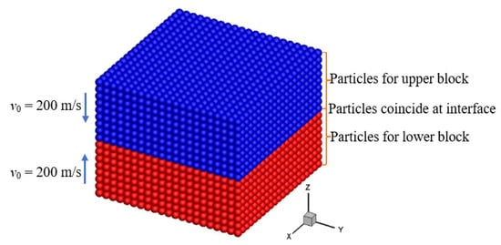 Initial SPH calculation model for high-velocity impact of two blocks.